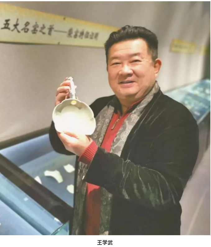 王馆长讲到,柴窑是五代十国皇帝周世宗柴荣的御窑,因为当时世宗姓柴,故名。北地出产的瓷器制作精美光彩绝伦,是当时诸多窑中最佳的。但底部大多多粗黄土色。柴窑是中国瓷器史上的一个里程碑。抛开瓷器造型艺术特点不说,仅从瓷器所用的物理、化学材料的处理水平,以及表现出来的光洁度、透光性、敲击声、硬度等指标,它就把中国制陶技术提高到一个空前高度。以至于一千多年时间里,也只有元代使用的“二元配方制瓷法”才能达到与之相近的水平。