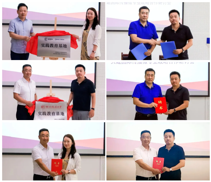 随后,孙江与商其坤签订战略合作协议,双方举行共建实践教育基地揭牌仪式。孙江受聘为共建项目学术顾问,商其坤、徐一洁受邀成为公司实务导师,标志着双方将充分共享专家资源,在应用实训、学术研讨、教学培训、课题申报等方面开展合作。