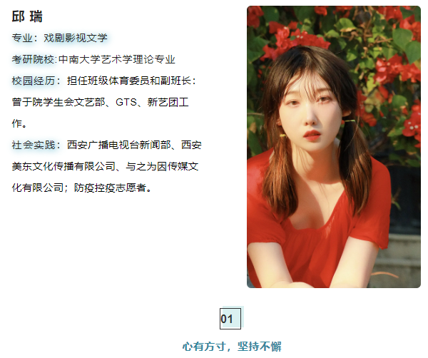 “考研也带给我了一些人脉与机遇,我现在有中传的研究生朋友,有北舞的研究生朋友,有厦大的研究生朋友,他们或学音乐或学电影或学美术,他们在各自的领域各有所长,正是因为考研我们认识彼此,并在一段时间里相互激励着。我相信这些人能带给我的远不止考研分享,或是互相加油这么多。”