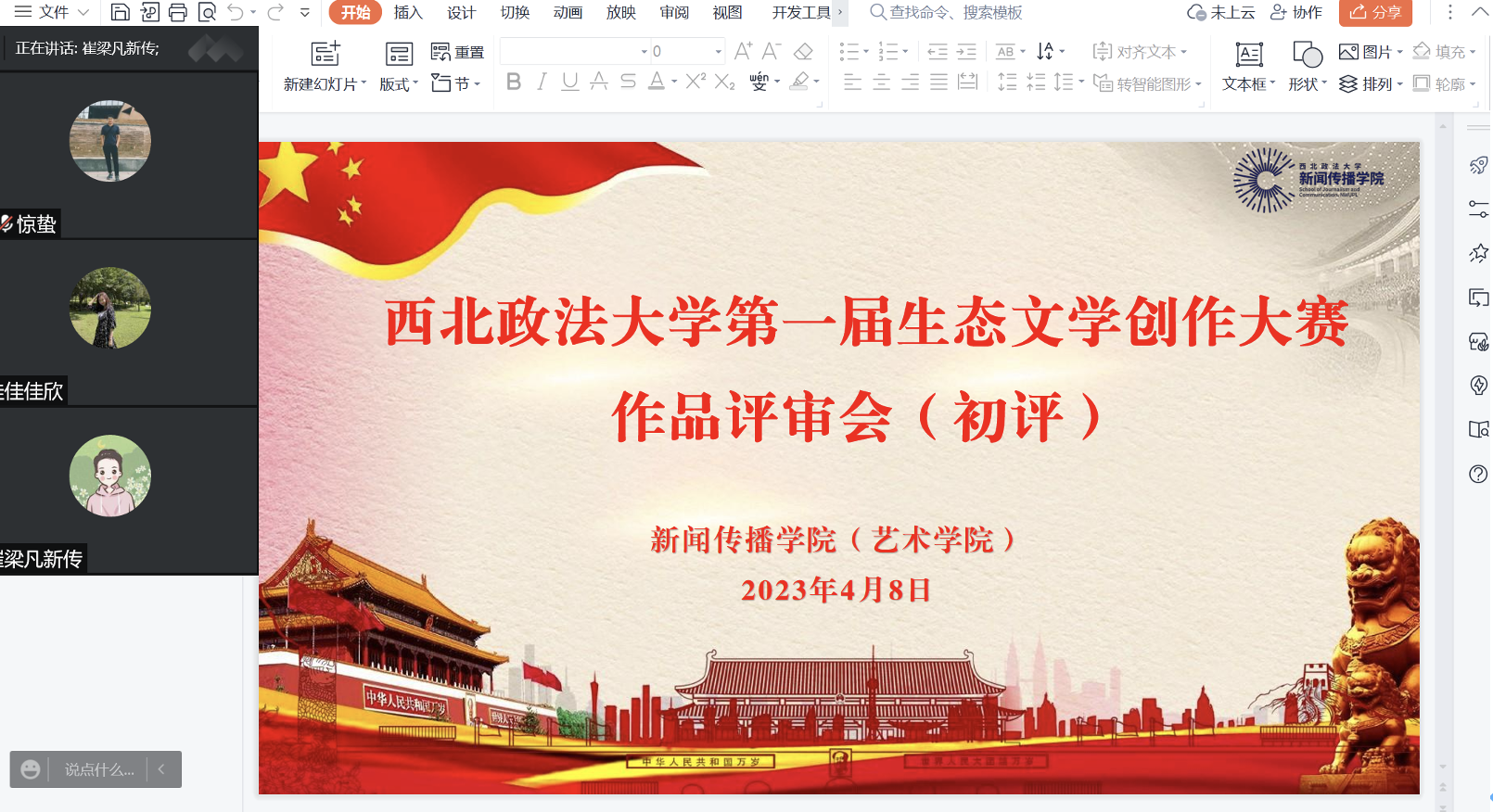 4月8日下午,beats365唯一官方网站团委举行BEAT365英国官网网站第一届生态文学创作大赛作品初评会,公司团委书记巩飞、团总支书记崔梁凡、团委兼职副书记李佳欣参加评审,评审会以线上会议的方式召开。