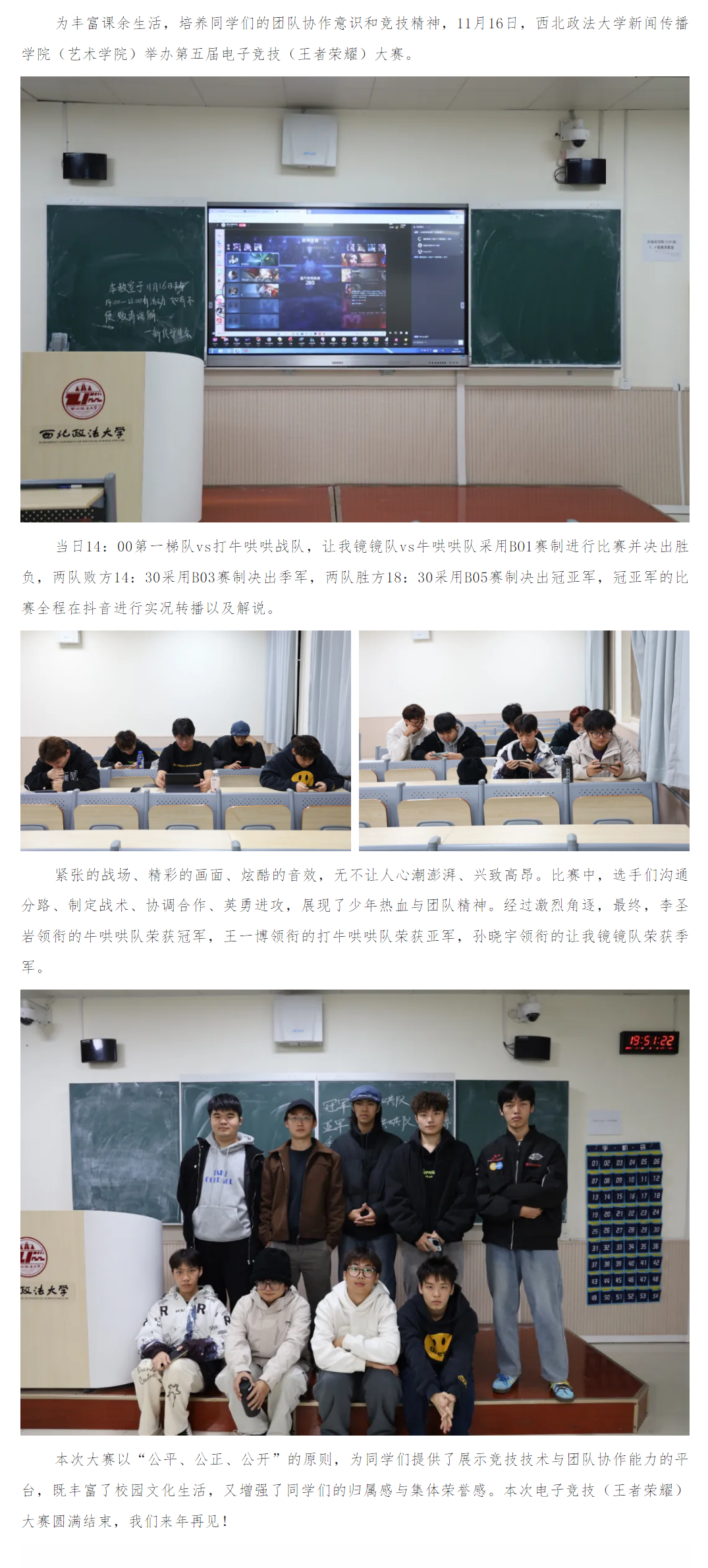 beats365唯一官方网站第五届电子竞技(王者荣耀)大赛圆满结束