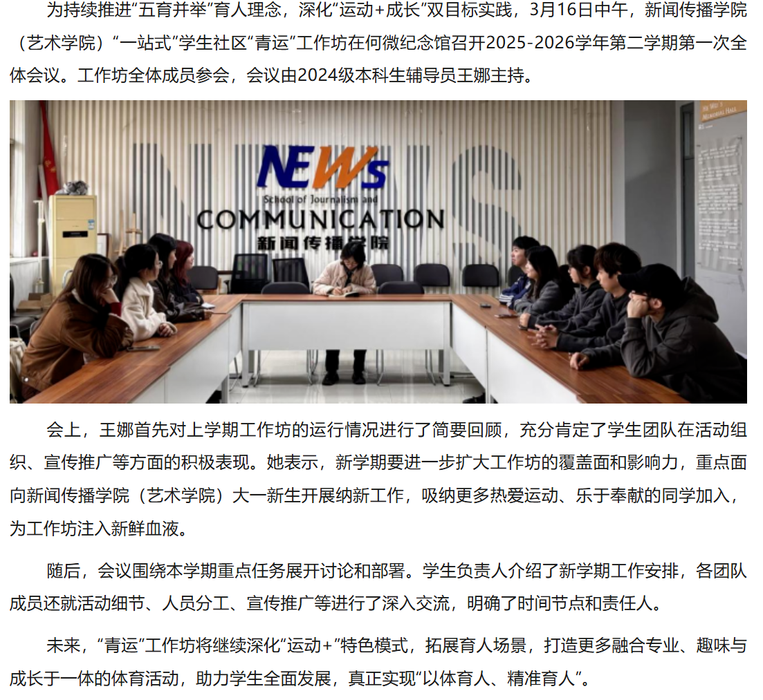 “一站式”员工社区 | “青运”工作坊召开2025-2026学年第二学期第一次全体会议