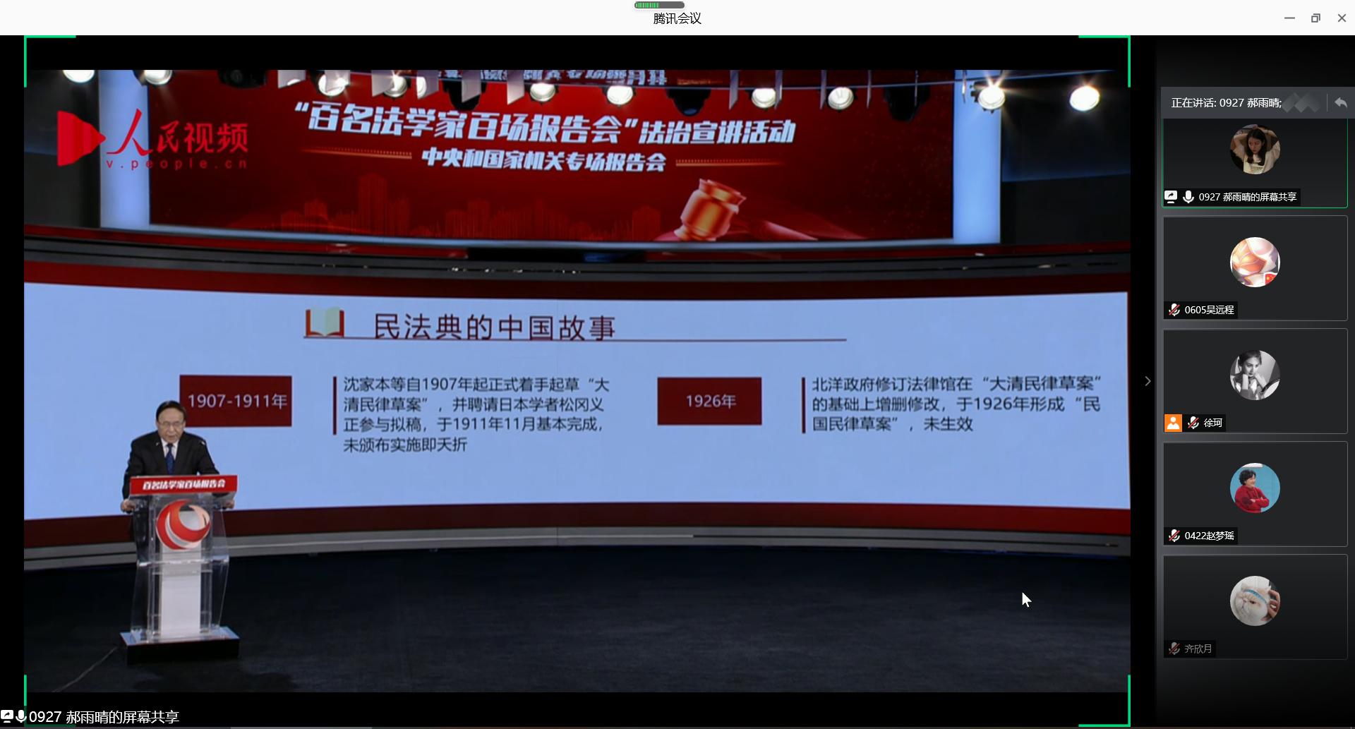 为深入学习宣传贯彻好《民法典》,根据公司相关安排,2020年7月29日下午,公司组织全体师生线上观看“百名法学家百场报告会”法治宣讲活动。本次宣讲活动以“宣传贯彻《中华人民共和国民法典》”为主题,由中国法学会党组书记、常务副会长陈训秋主持,中国法学会党组成员、学术委员会主任张文显主讲。