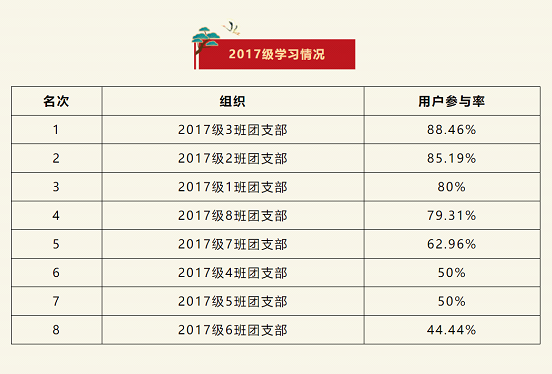 在上一期“青年大学习”网上主题团课的学习中,2017级3班团支部位居榜首,2017级2班团支部排名第二,2017级1班团支部排名第三。