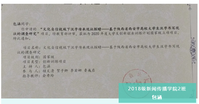 “汉字不仅仅是一种文化符号,更是中华民族古老智慧文化的载体,是人们社会生活和精神生活提高的必然手段。高等院校的优秀青年学子作为中国特色社会主义事业的建设者,中华民族优秀传统文化的继承者,对于实现中华民族的伟大复兴具有重要作用。基于此,对高等院校员工的汉字书写状况更应该给予重视,汉字书写的保护与传承势在必行。”在问及包涵为何会想到以汉字为出发点去策划这个项目时,她如是答道,“我们在刚开始只确立主题为汉字,但是具体方向一直没法确定。后来听取了俞老师的建议,将目光放至高校员工的汉字书写现状上,对此进行具体的调查研究。”因疫情原因,许多计划无法顺利实施,其中最大的困难就是项目后期没办法实地调查,只能通过线上交流来获取相关信息。后期实践差强人意,因此最开始包涵团队预计是省级立项,但是看到最终结果是国家立项时,团队成员又惊又喜。