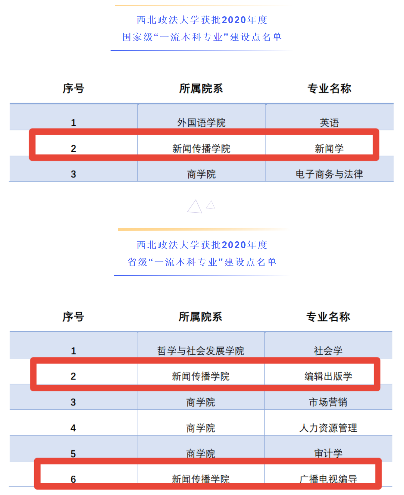 近日,教育部公布了2020年度国家级和省级“一流本科专业”建设点名单,公司新闻学专业获批国家级“一流本科专业”建设点,编辑出版学、广播电视编导两个本科专业获批省级“一流本科专业”建设点。