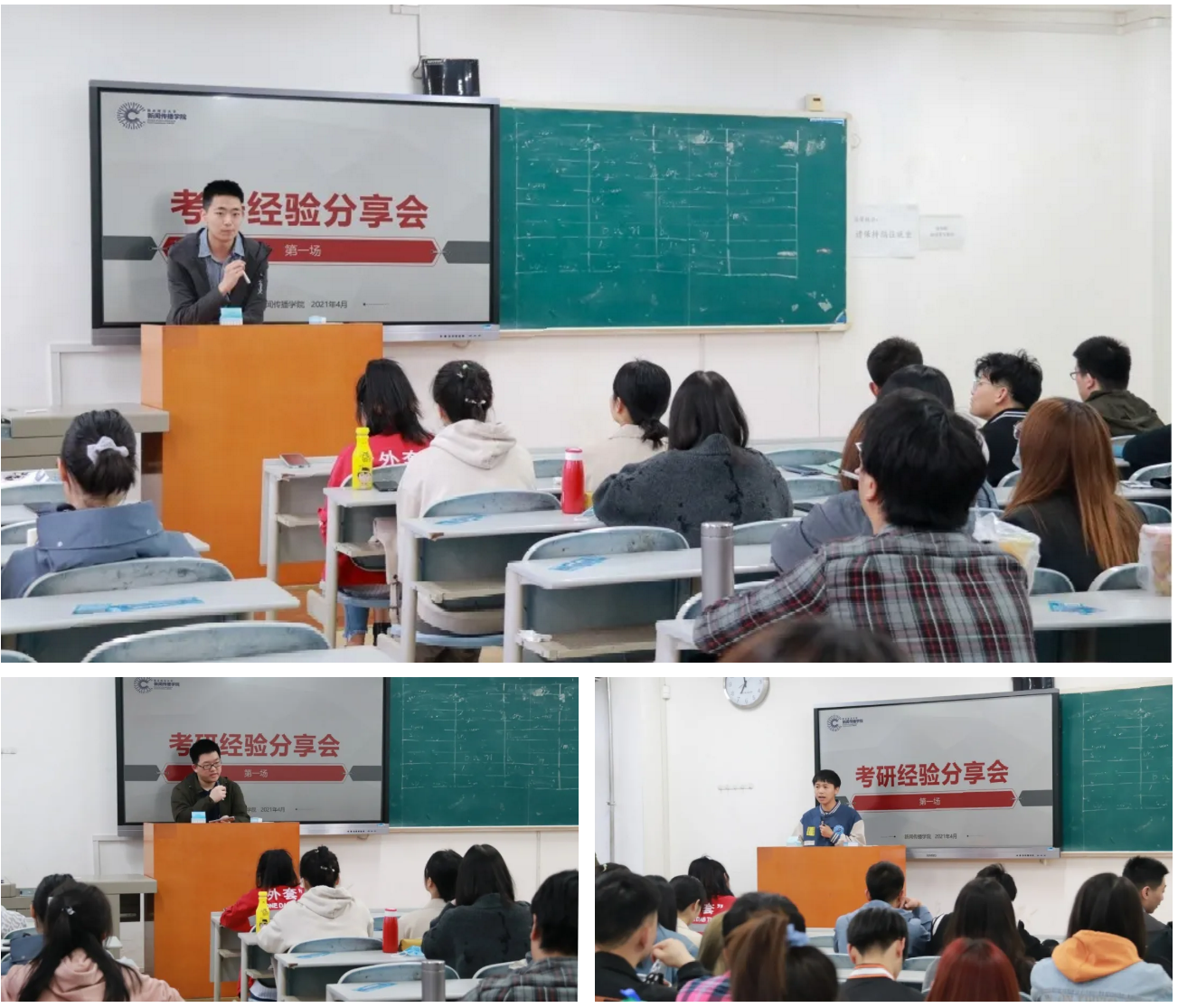4月8日晚,公司于天平楼A203教室顺利开展了考研经验分享会。本次分享会邀请到成功考取公司研究生的柴文茂、胡政豪、王立波三位同学从院校选择、备考阶段、复习侧重等方面为同学们答疑解惑,2018级辅导员刘璇主持分享会。