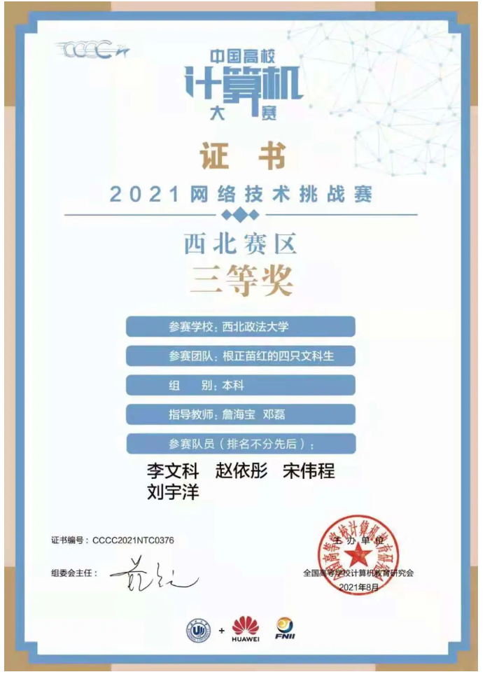 参加此次网络技术挑战赛,十分感谢邓磊老师、詹海宝老师的信任和认可,也很感谢队友们的帮助和鼓励。大家向同一目标推进的过程对我而言弥足珍贵。