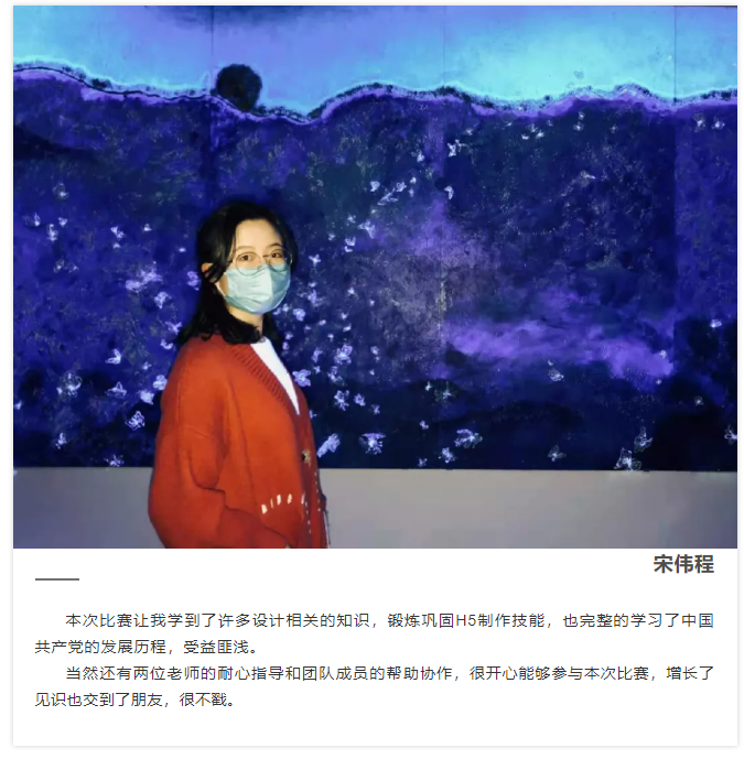 相比于整体的主题而言,参赛团队延续了去年的红色文化主题,今年更好地紧跟建党100周年的号召,开发党史学习的小程序。在风格上与去年也非常相似。作为当代青年,在新时代传承历史传统,讲好历史故事这是我们弘扬优秀传统文化的应有之义,本次比赛中也出现了越来越多将文化与技术相结合的项目,将书写在传统古籍里的历史通过新的表现手法所呈现,团队成员认为,这也是以后自身所应该坚持和努力的方向。