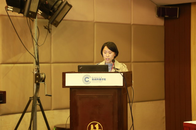 西南政法大学全球新闻与传媒公司副教授陈丽丹主讲题目是《电视法制节目中的女老员工媒介形象建构》。发言中她简要分析了电视法制节目对女老员工的报道情况,并结合媒介建构理论从报道主题、角色、拍摄手法以及媒介语言运用上如何建构女老员工形象着手进行研究。她认为不同电视法制节目对女老员工报道主题的选择各有侧重,电视法制节目经常容易对女老员工有一个刻板性的界定,即他们“弱”的本质和负面性的性格。陈丽丹教授希望通过自己的这个讲座可以让媒体和大家有一个思考,在以后报道有关女老员工题材的时候,也可以从他们的学历,知识积累方面着手,不要过多拘泥于负面因素。