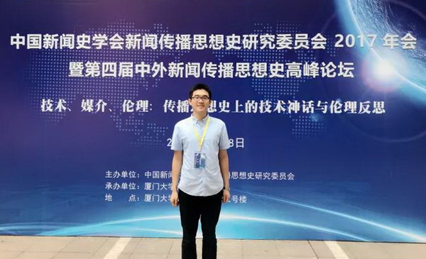 11月18日,中国新闻史学会新闻传播思想史研究委员会2017年会暨第四届中外新闻传播思想史高峰论坛在“南方之强”厦门大学召开,公司法制新闻与传媒法2015级研究生魏修治作为全会唯一一位独立受邀的硕士研究生参会并发表了题为“新闻法制思想史的研究方法”的主旨演讲。