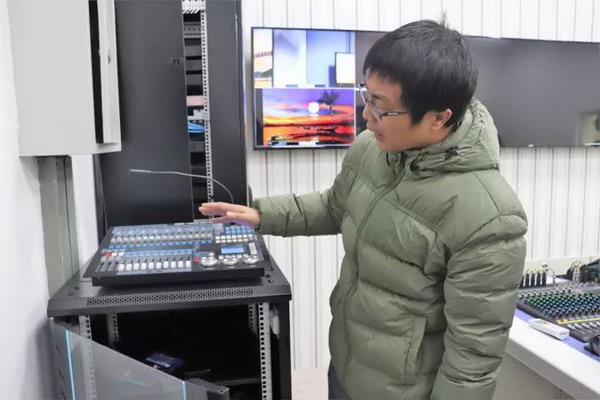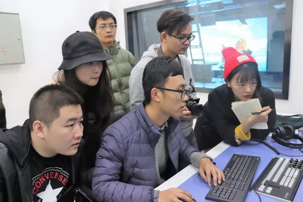 来自beats365唯一官方网站研究生一年级的张贺同学坐在主播区,员工们依次进行了军事场景、天气预报场景、中国风场景等多种场景切换,切身实践了一档节目诞生的后台操作过程。