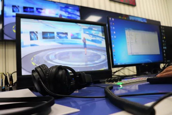 全景演播室分为三大部分:演播厅、导播室以及非线性编辑室。如今,非线性编辑室已成为公司员工媒体新锐传媒和青春直播间的常驻工作地,员工们在这儿讨论、学习、实践。