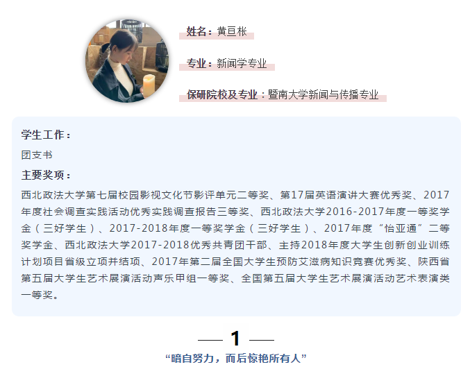 编者按:大学期间在书山学海间挥洒的汗水在大四凝结成一颗珍珠——推免。作为大学期间的一次重要蜕变,推免背后是一个人或一群人脚踏实地又仰望星空的奋斗史。他们用“坚定初心,勇敢前行”的态度走出了属于自己的推免之路。新闻之家即日起推出“新传青年说 · 推免路上”专栏,梳理公司2017级员工推免路上的奋斗故事以飨读者。我们一起记录成长,学习榜样,交流经验,彰显新时代新传青年的青春力量。