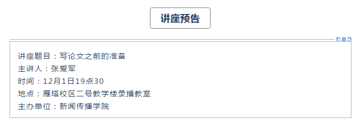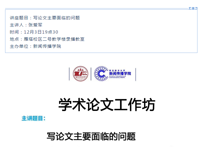 工欲善其事, 必先利其器。为了同学们在未来学术的道路上一马平川,乘风破浪,公司的博士生导师张爱军教授将举办学术论文工作坊,解答大家在论文写作上的困惑和疑问、指导同学们写论文之前的准备工作以及讲述同学们在写论文时主要面临的问题。