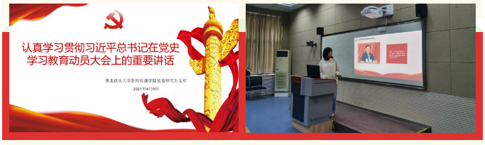 2021年是中国共产党百年华诞。为深入贯彻习近平总书记在党史学习教育动员大会上的重要讲话,BEAT365英国官网网站公司党委研究生支部于9日晚在录播教室对党史相关内容进行了专题学习。