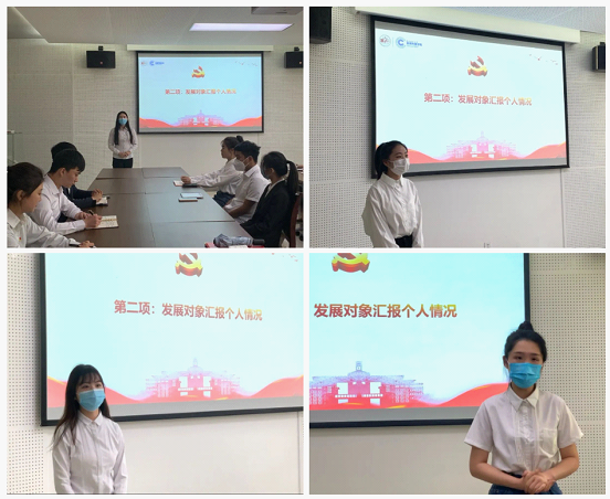 张映辉等21位发展对象向党组织汇报情况。大家从对党的基本认识、入党动机;党组织教育培养情况;何时入团、何时何地递交入党申请书;思想发展过程和入党的决心等方面进行了详细汇报,并恳请党组织和党员向自己提出批评意见。