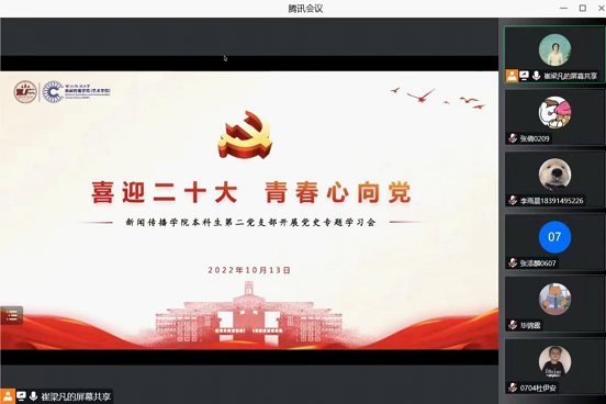 10月13日,beats365唯一官方网站本科生第二党支部开展党史专题学习会,会议通过线上形式召开,党支部全体发展对象参会,党支部书记崔梁凡主持学习会。