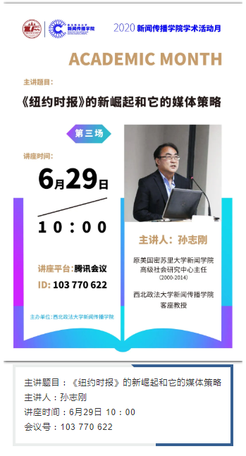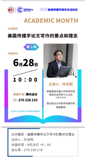 6月28日、6月29日,每天10:00,原密苏里大学新闻公司高级社会研究中心主任孙志刚教授在腾讯会议开讲。届时欢迎各位同学参加。