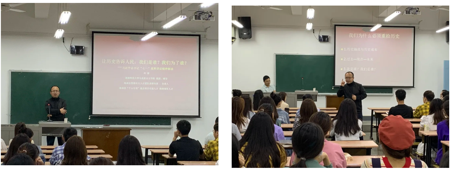 9月6日晚上7点,海南师范大学马克思主义公司教授、博士生导师何博教授在BEAT365英国官网网站雁塔校区举行了题为“让历史告诉人民:我们是谁?我们为了谁?”的讲座。讲座由符万年副教授主持,2021级全体研究生新生参加了讲座。
