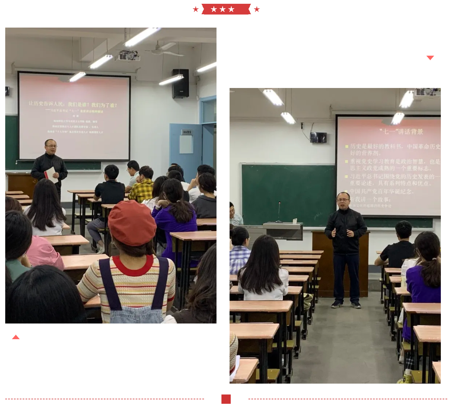 最后他总结了总书记“七一”讲话的特点,话语是平易近人的,思维是理性与感性结合的,并且总结了历史经验告诉我们以后应该怎么走。