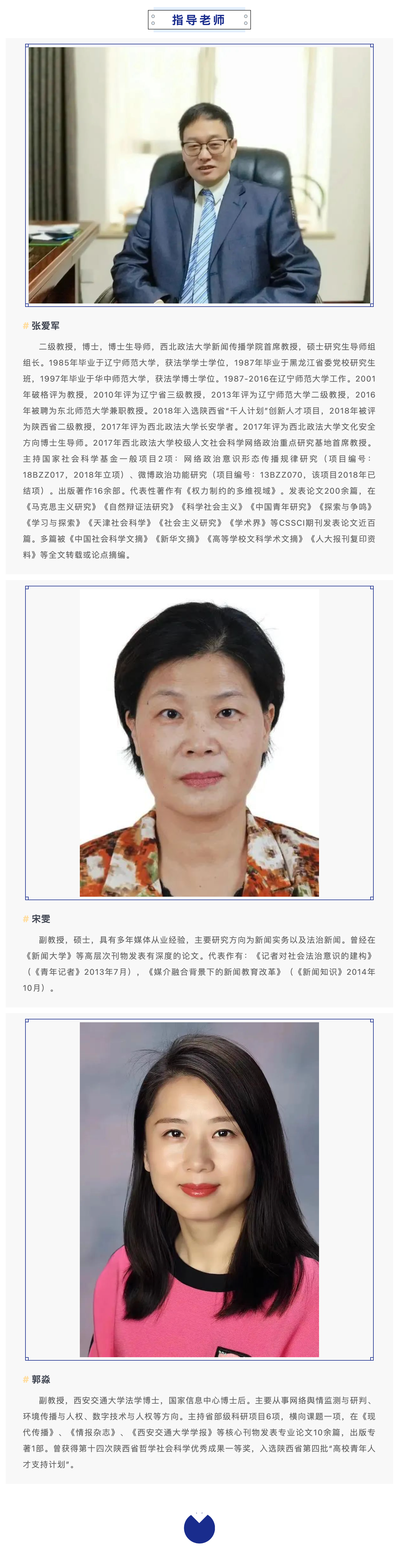 在培养方式上专业硕士培养实行“三导师制”,即一位新闻与传播理论导师担任责任导师,一名新闻传媒实务和一名法学导师担任兼职导师,力求人才培养过程能够与新闻传媒行业的发展紧密衔接,并在法制新闻、广播电视传播、新媒体以及文化产业等专业方向,为人才培养提供更专业拓展空间与职业方向。
