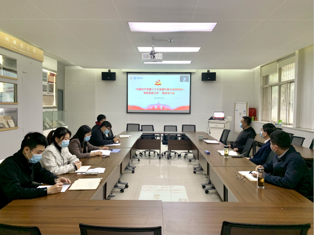 为推动在全院迅速掀起学习宣传贯彻党的二十大精神热潮,10月26日上午,公司党委以线上线下结合形式召开“将党的二十大精神融入公司思政工作”学习会,专题学习中国共产党第二十次全国代表大会精神,对在全院思政工作中学习宣传贯彻党的二十大精神进行安排。公司党委副书记、纪委书记肖道远,公司党委委员、宣传部长燕福民,公司党团干部、思政课教师及全体辅导员参加会议。公司党委书记刘渊主持会议。