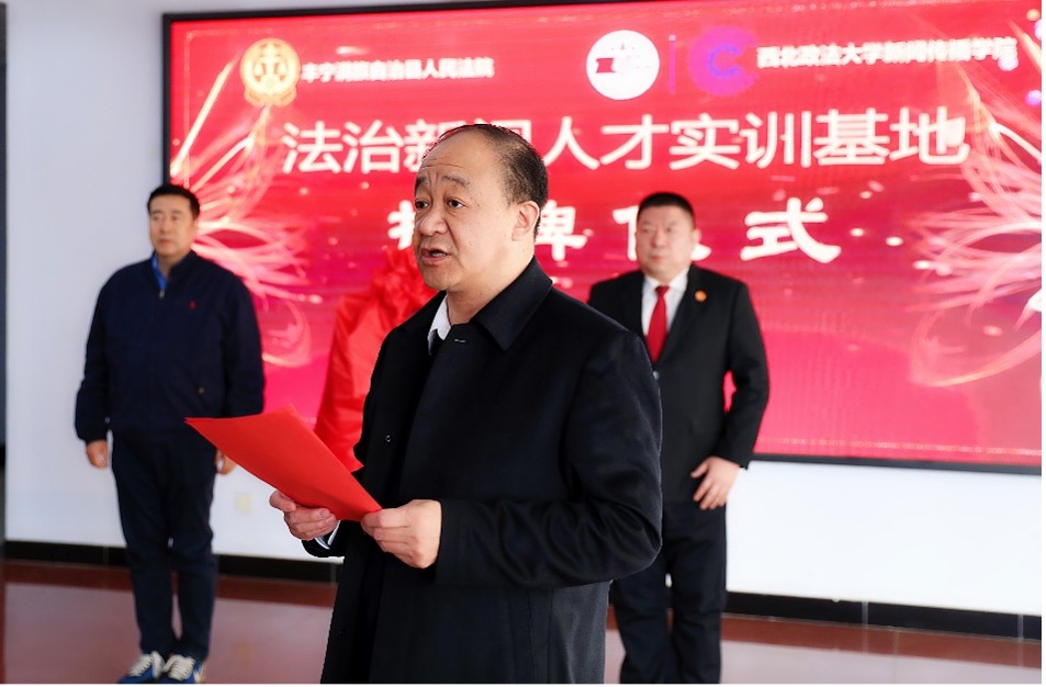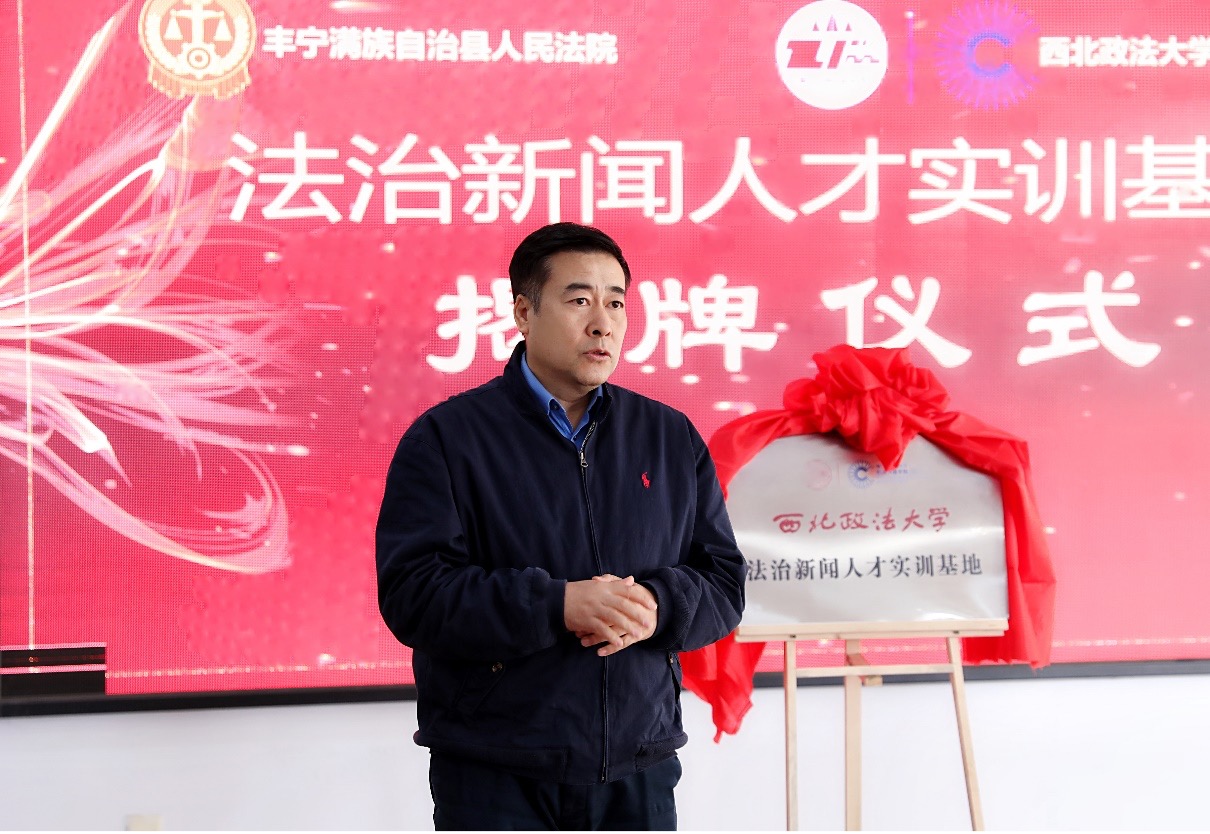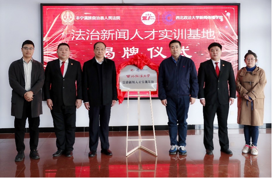 3月12日,公司与河北省丰宁满族自治县人民法院举行共建法治新闻人才实训基地揭牌仪式。best365英国在线体育官网经理孙江,丰宁县政府副县长、公安局局长刘旭,丰宁县委宣传部副部长刘海波,丰宁法院经理王海涛及有关部门领导出席了揭牌仪式。
