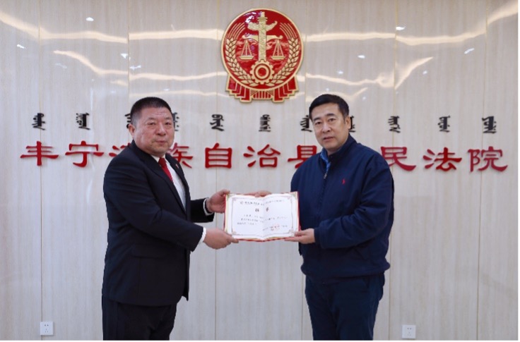 揭牌仪式后,孙江为丰宁法院王海涛、任瑞飞、王爱军颁发了研究生实务导师聘书,为公司“专业学业实务”三轨并行的“三导师制”贯彻落实扩充力量。