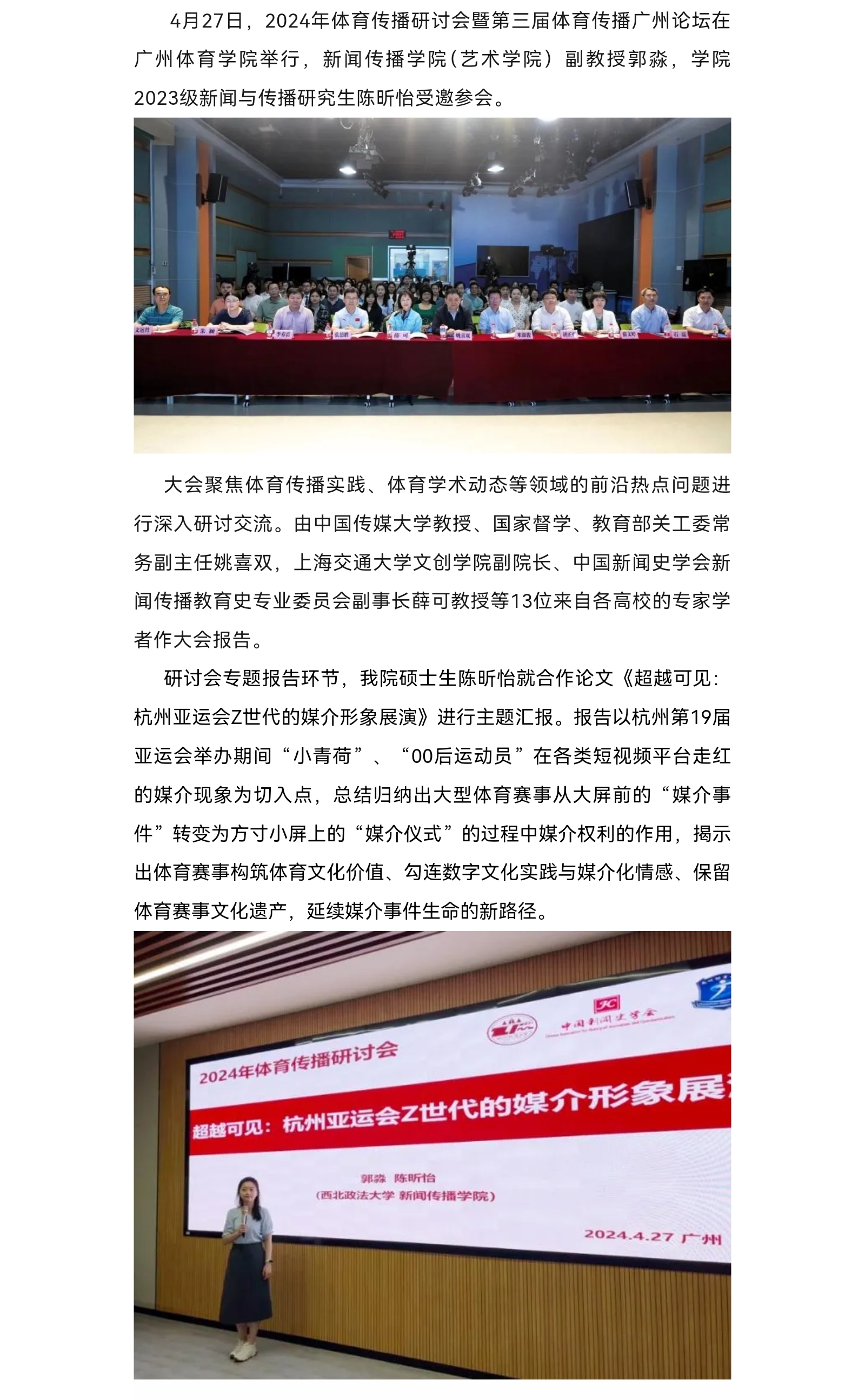 公司师生受邀参加2024年体育传播研讨会并做主题汇报
