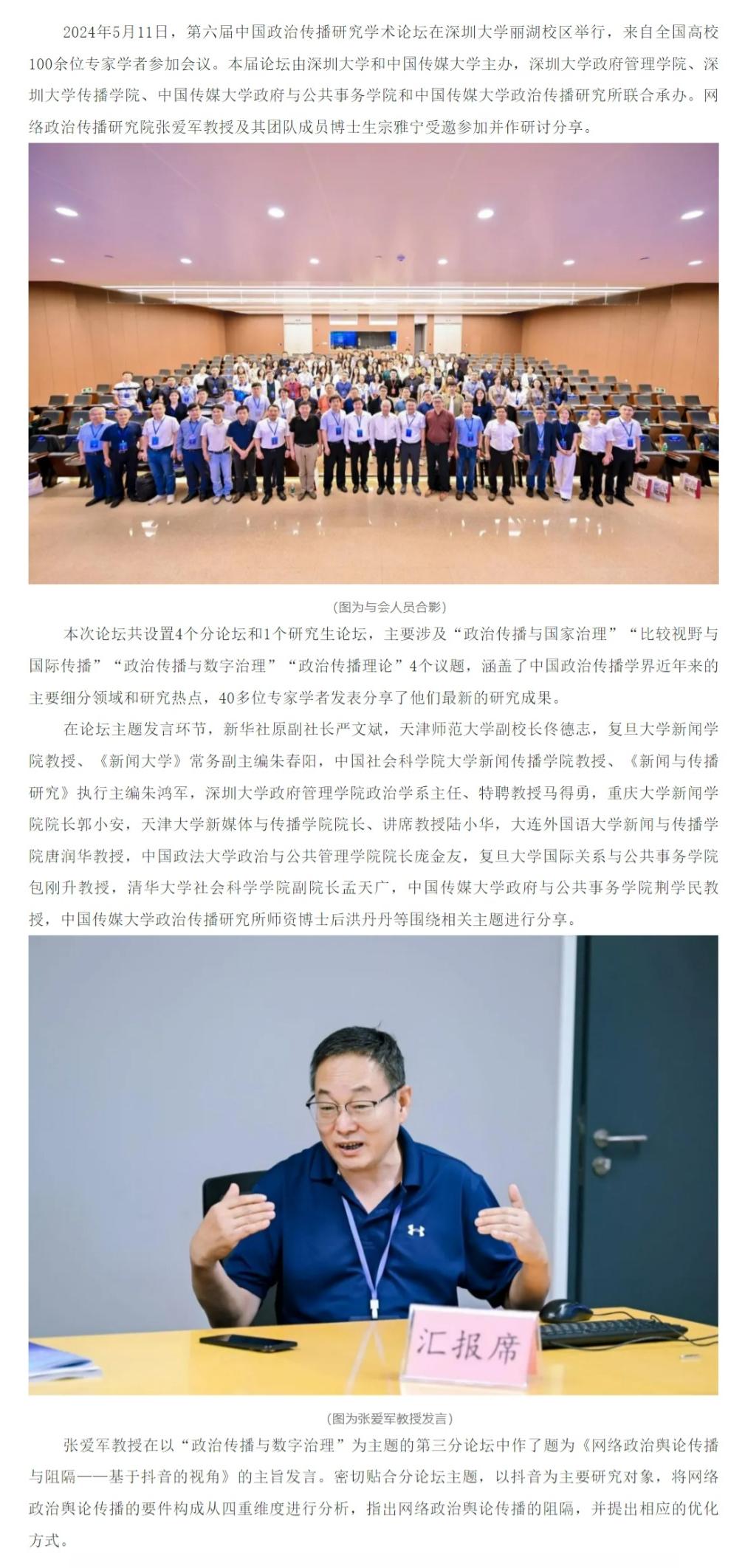 网络政治传播研究院经理张爱军教授及其团队成员博士生宗雅宁参加第六届中国政治传播研究学术论坛