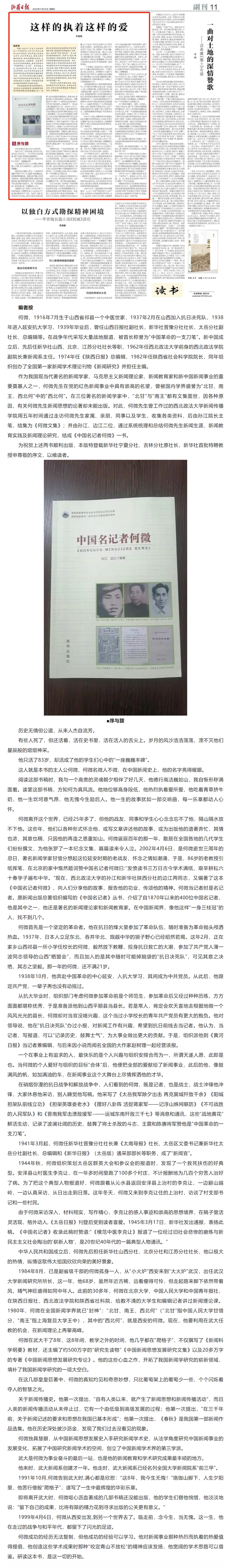 山西日报刊发新华社宁夏分社、吉林分社原社长申尊敬纪念何微先生文章《这样的执着这样的爱》