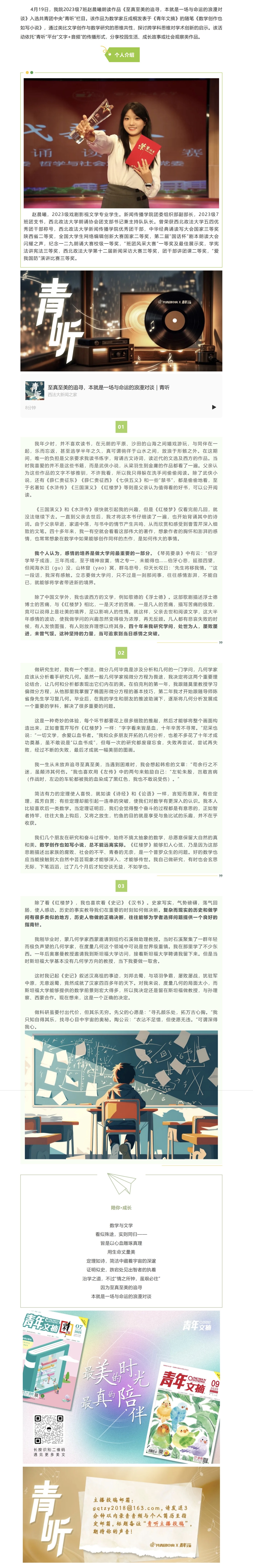 媒体聚焦 | 公司2023级7班团支书赵晨曦诵读作品在共青团中央微信公众号播发