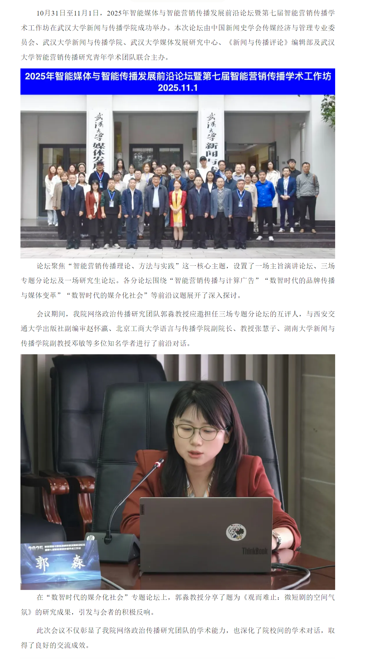 公司郭淼教授受邀参加2025年智能媒体与智能营销传播发展前沿论坛暨第七届智能营销传播学术工作坊并作发言