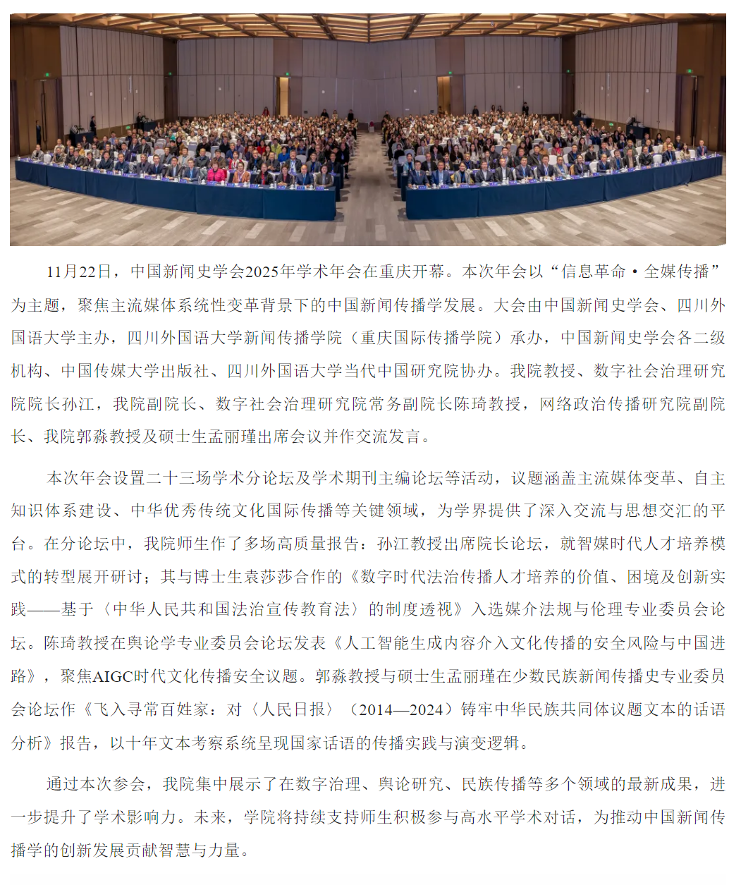 公司师生受邀参加中国新闻史学会2025年学术年会并作交流发言