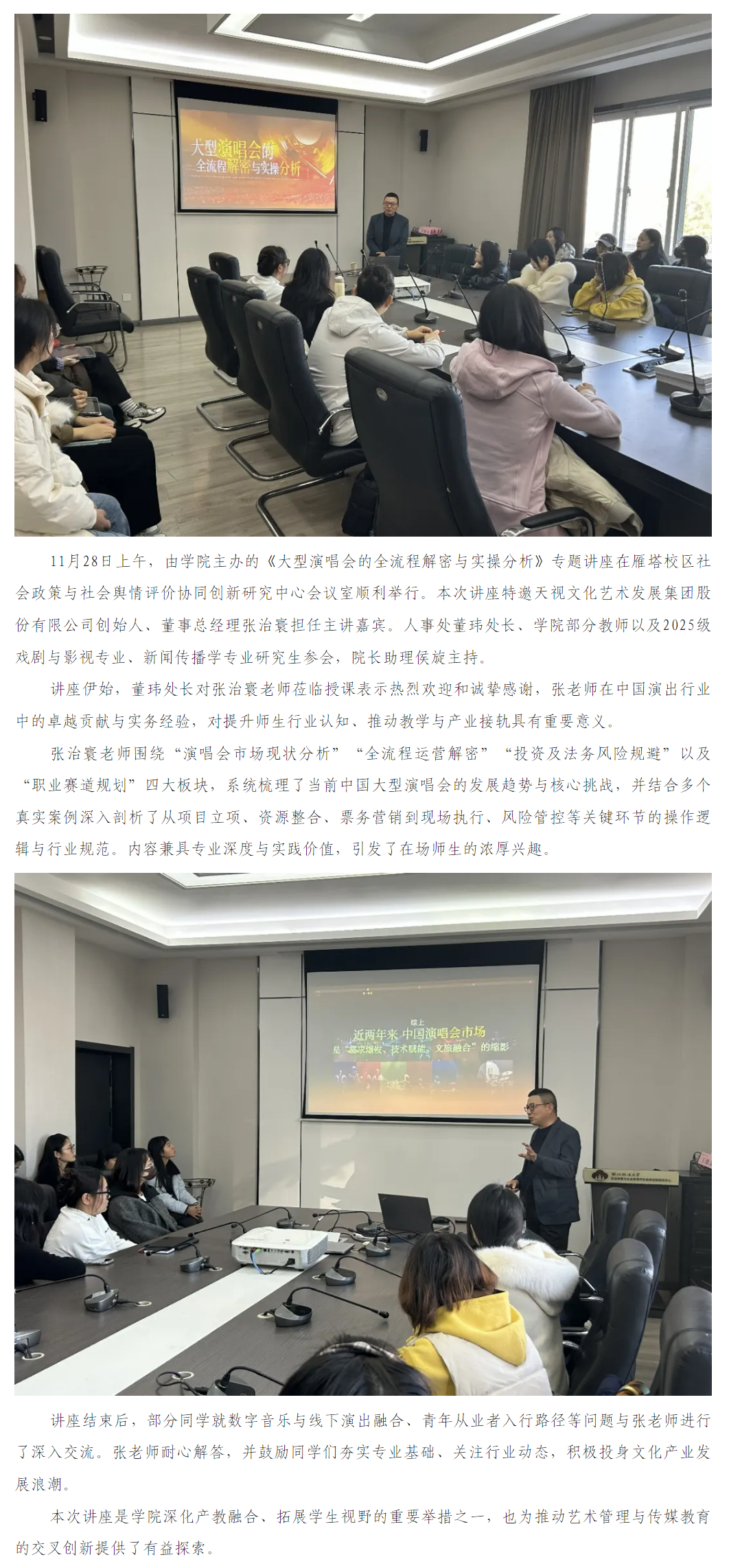公司举办《大型演唱会的全流程解密与实操分析》专题讲座