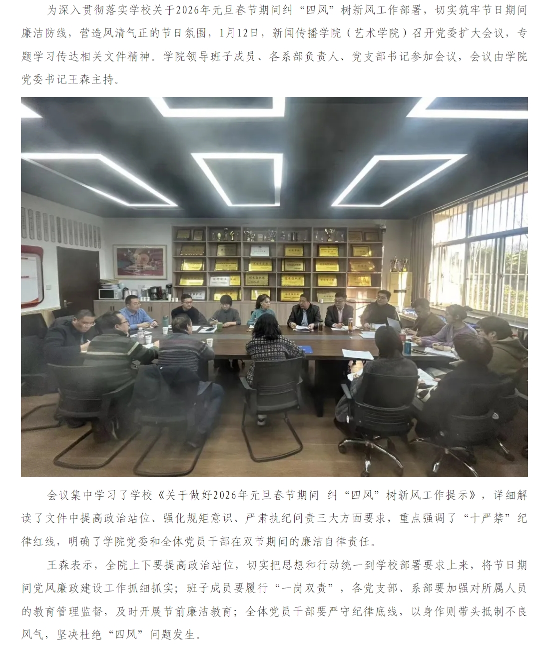公司召开党委扩大会议专题学习传达2026年元旦春节期间纠“四风”树新风工作要求