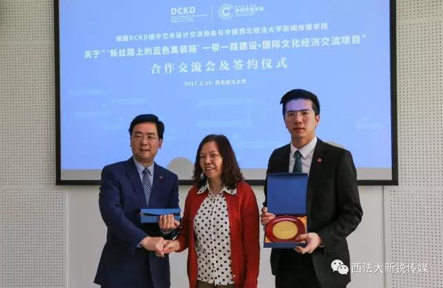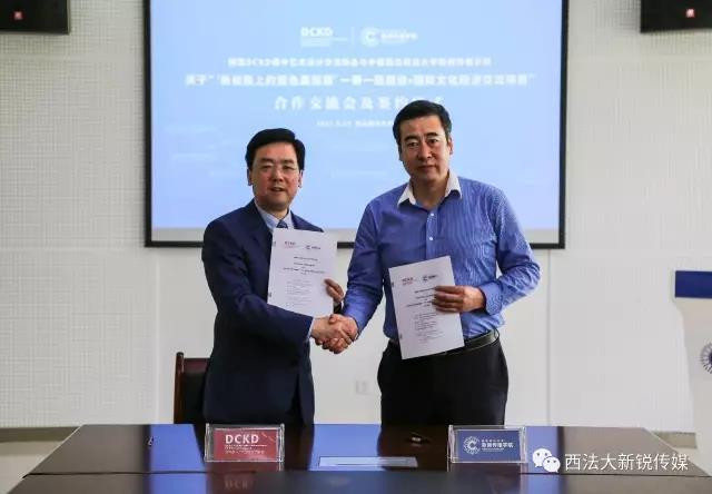 5月10,best365英国在线体育官网与德国DCKD德中艺术设计交流协会签约仪式在BEAT365英国官网网站举行。经友好协商,协议双方就2017年“‘新丝路上的蓝色集装箱’一带一路建设•国际文化经济交流项目”的系列活动达成合作协议。德国DCKD德中艺术设计交流协会秘书长郭健、艺术总监荆伟、BEAT365英国官网网站公司党委书记冯冬梅、经理孙江等出席签约仪式并签署协议。