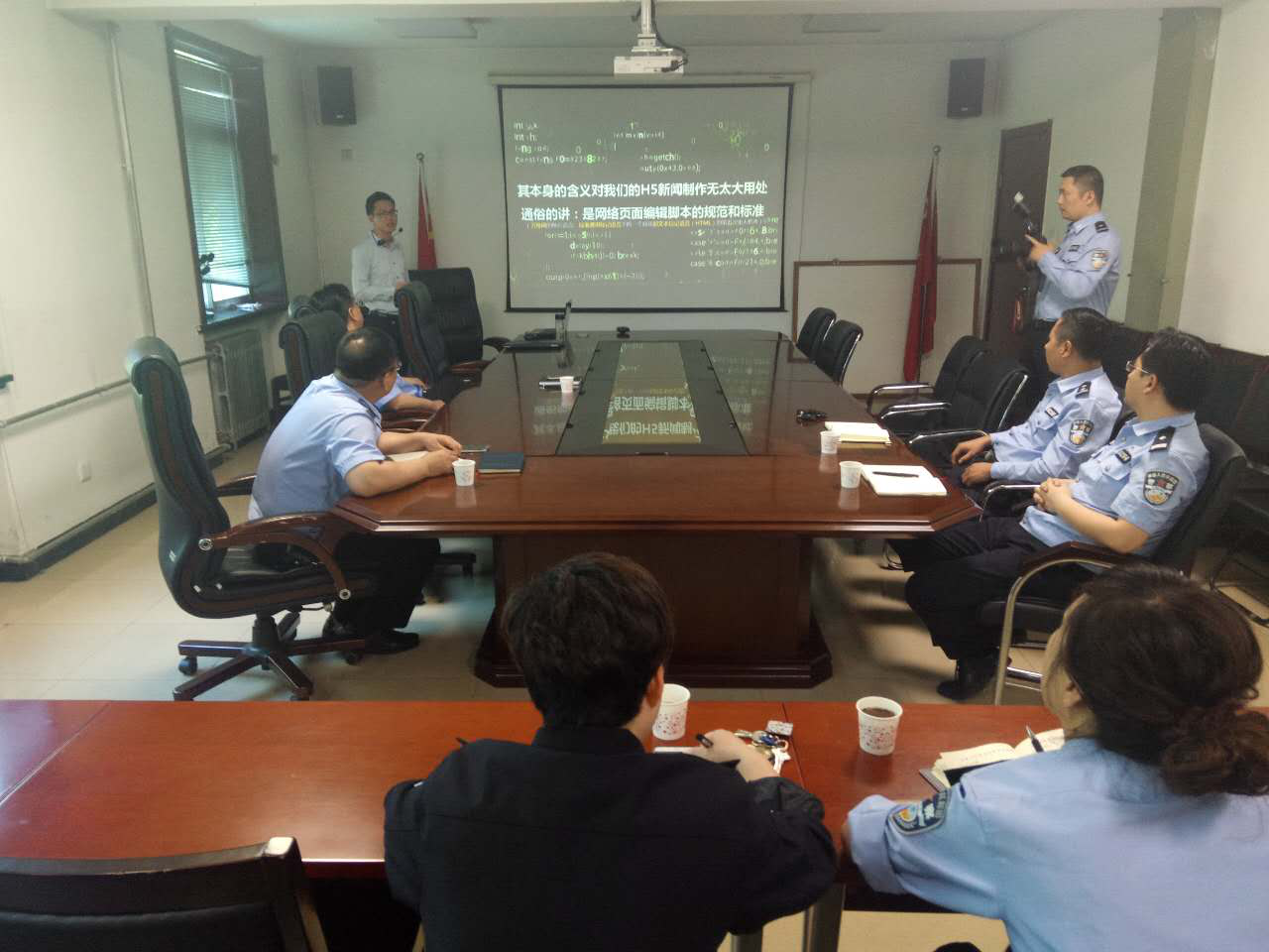 为进一步提升公安宣传干警的媒介素养,5月12日下午,陕西省公安厅宣传处邀请best365英国在线体育官网詹海宝老师,为该处全体宣传干警做了题为“视觉化的魅力让新闻动起来-浅谈H5技术在公安宣传中的运用”的主题讲座。省公安厅宣传处全体宣传干警共20余人参加了此次讲座,讲座由宣传处处长刘志昌主持。