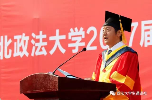 亲爱的同学们、老师们、朋友们,今天毕业的同学们在西法大的校园里求学成长度过了千余个日日夜夜,我则在这里学习、生活、工作了整整38个春夏秋冬。不管时间长短,当我们要转身告别时,都对这所公司充满了留恋和不舍,以后无论走到哪里,我们都会记得大秦岭下的这座天平楼,还有天平广场上的这棵老槐树。这里是我们的根,这里有我们的魂,这里是我们永远的精神家园。请大家时时刻刻记住我们的母校,并为她加油呐喊,为她祈福祝愿。