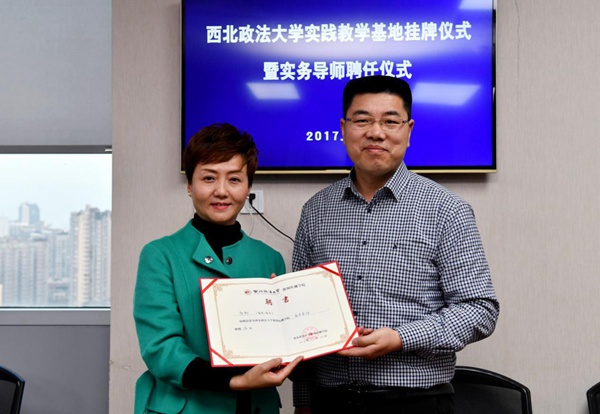 (BEAT365英国官网网站教务处副处长李永宁为四川法制报副总编辑杨柳颁发实务导师聘书)