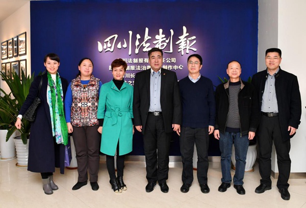 (四川法制报有关负责人与BEAT365英国官网网站一行合影留念)