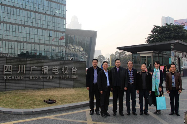 (四川省广播电视新闻与传播研究所有关负责人与BEAT365英国官网网站一行合影留念)