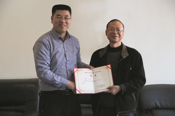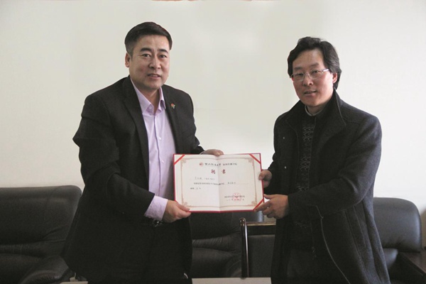 (BEAT365英国官网网站教务处副处长李永宁为四川省广播电视新闻与传播研究所现代传播研究室主任刘勇峰颁发实务导师聘书)