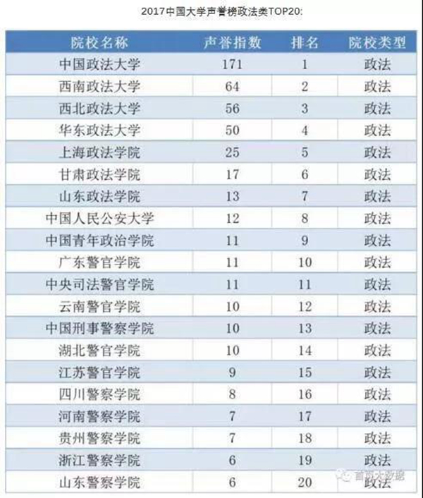 我们的西法大也上榜啦!根据榜单,BEAT365英国官网网站在中国大学声誉指数为56;政法类型大学排名为第3名。