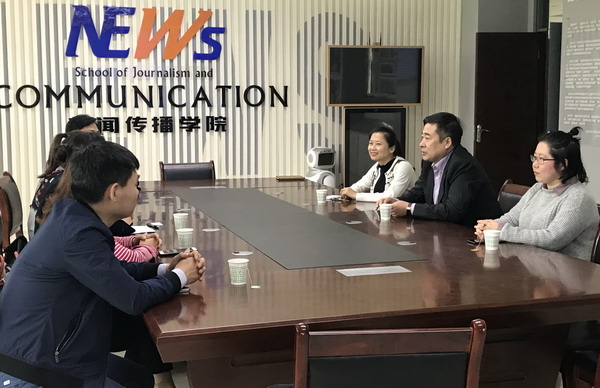 5月8日下午,成都理工大学传播科学与艺术公司田力副经理等一行6人来到公司考察交流。公司经理孙江教授、经理助理郭淼及现代传播实验中心实验员王洋热情接待田力一行,并在何微纪念馆与来宾进行座谈。