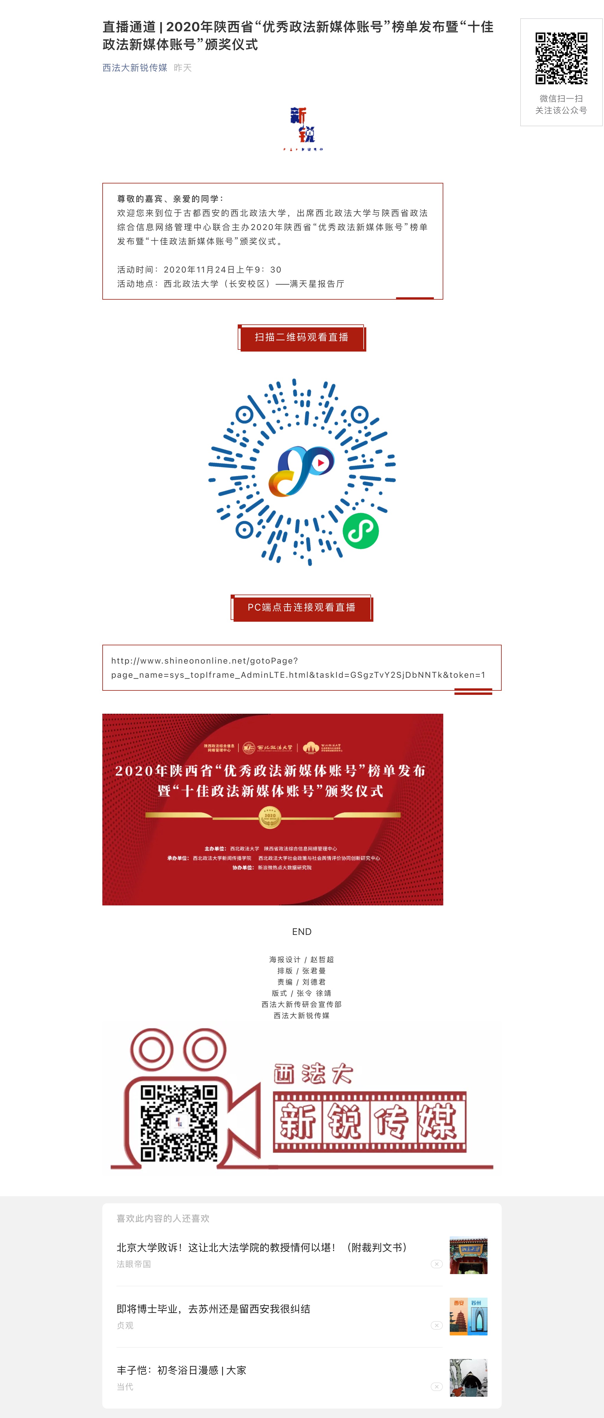 上一篇:榜单发布 | 2020年陕西省“优秀政法新媒体账号”榜单发布暨“十佳政法新媒体账号”发布仪式成功举办
