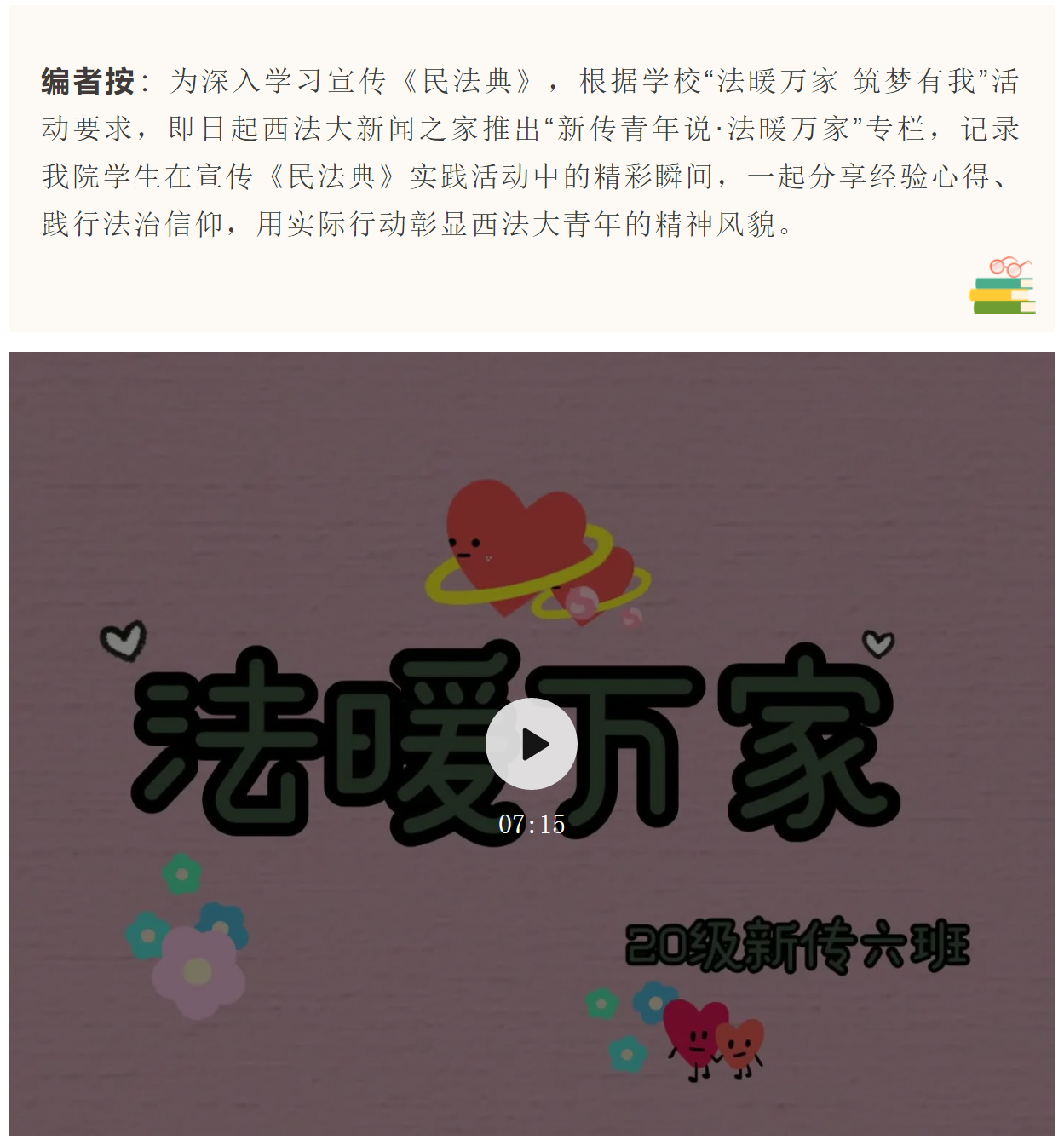 ■ 2020级新传6班法暖万家视频作品