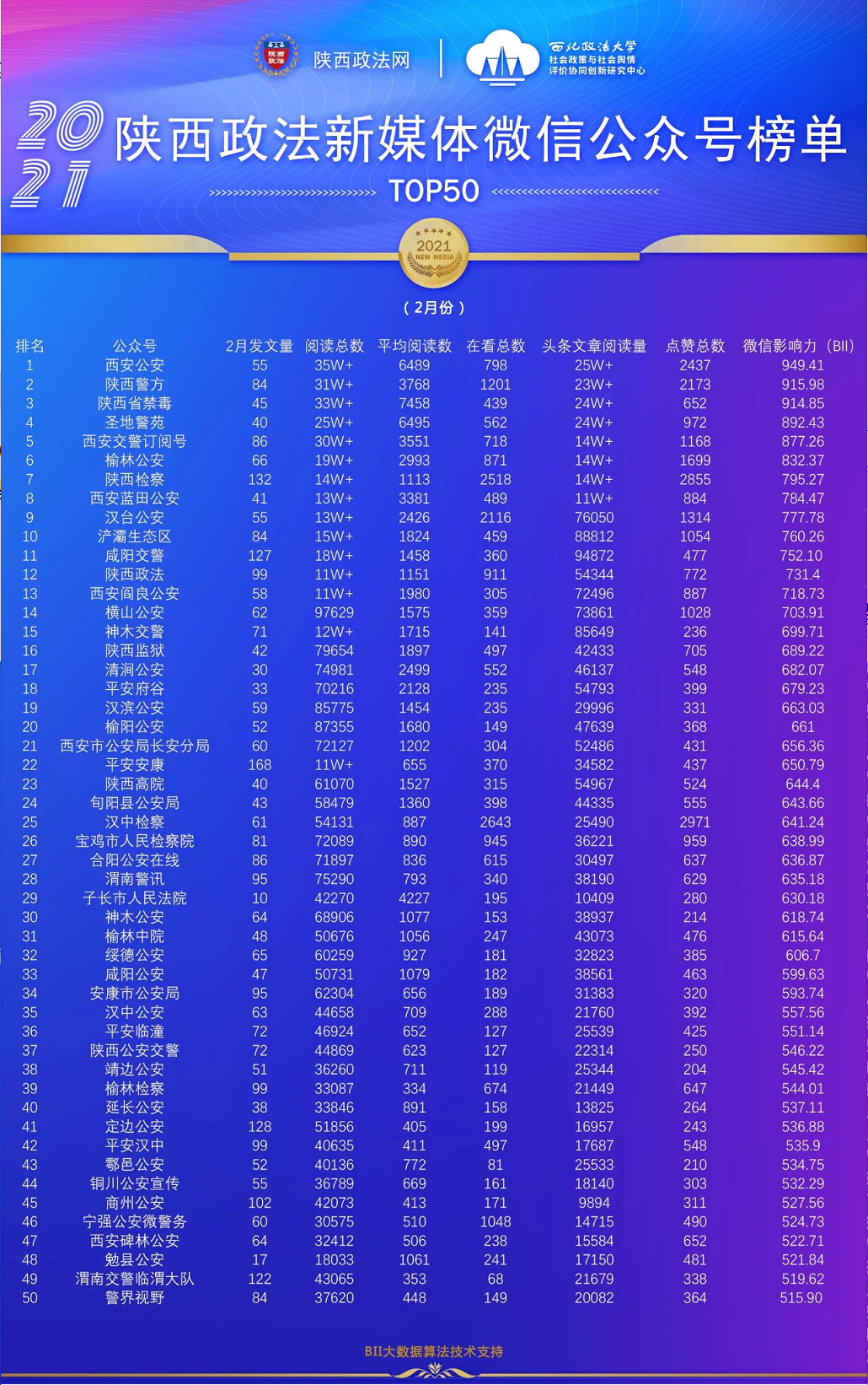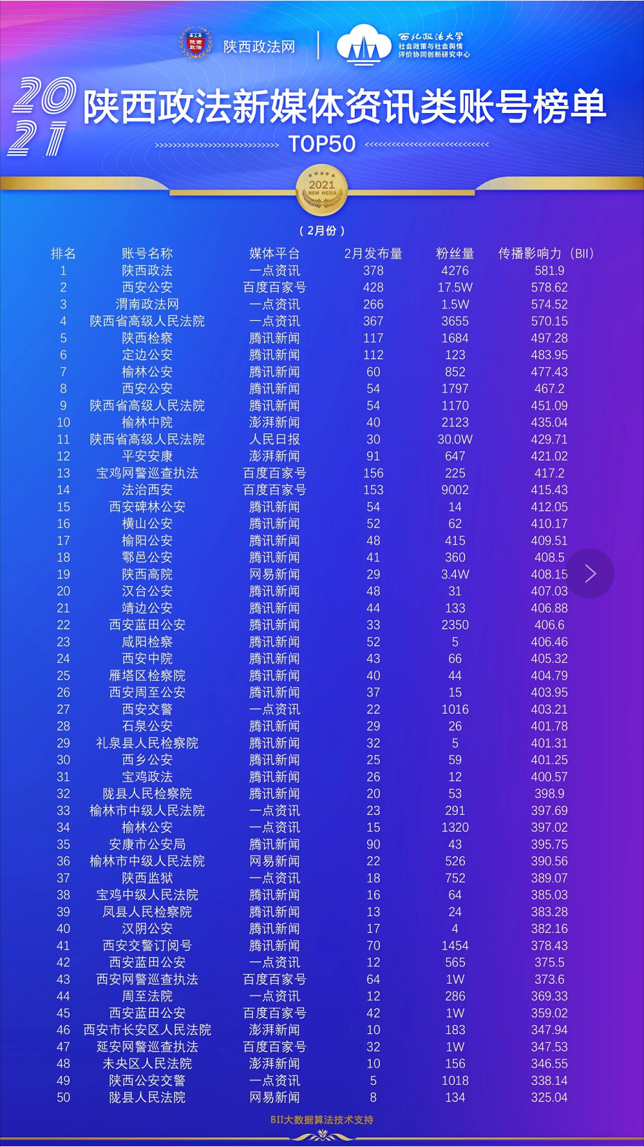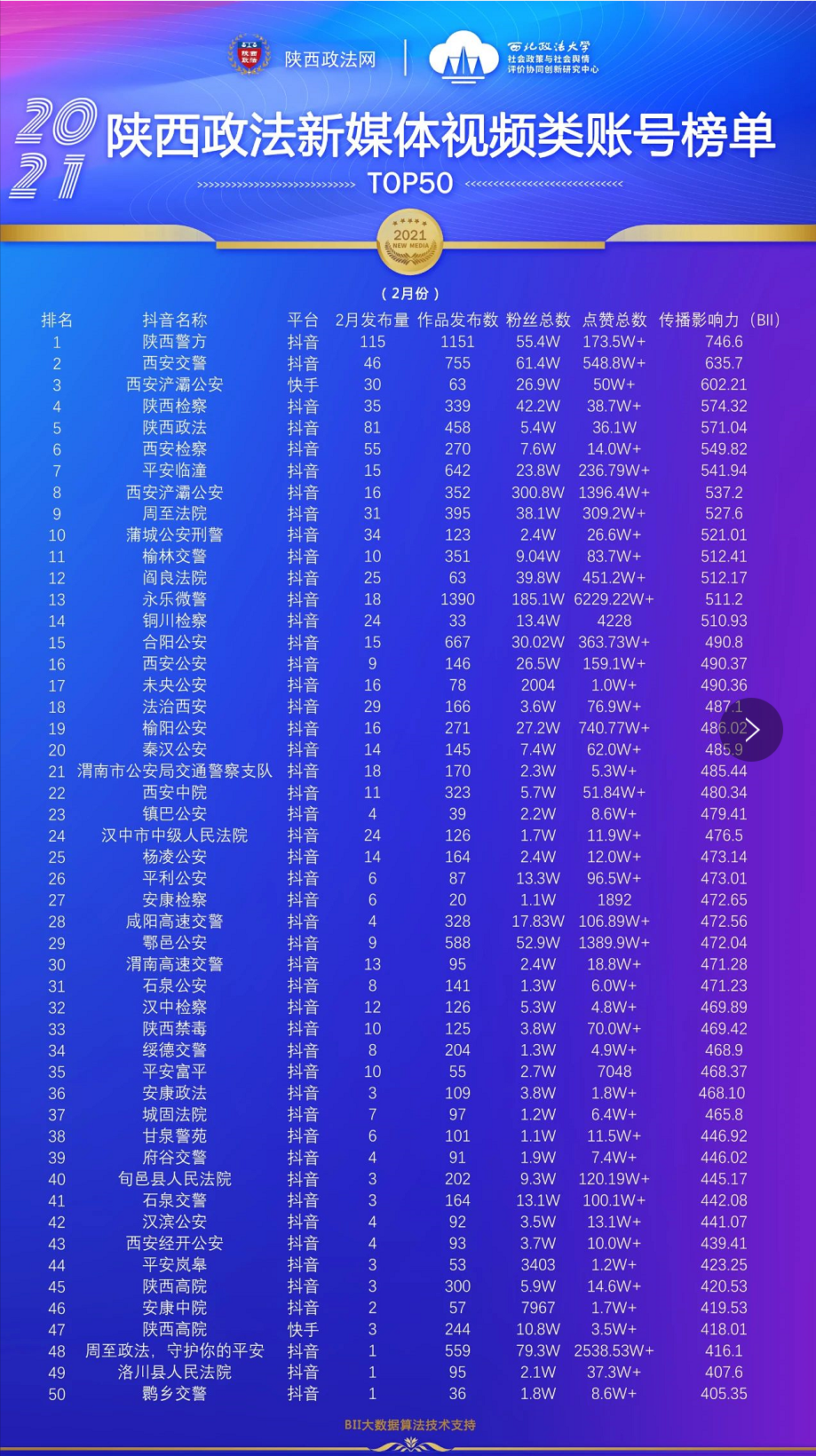 重磅来袭!陕西政法新媒体账号2021年2月榜单发布
