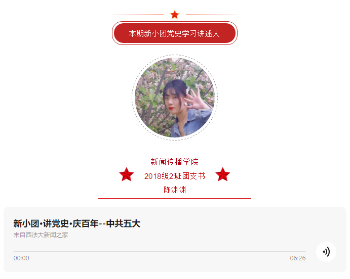 为迎接中国共产党百年华诞,扎实推进党史学习教育,教育引导公司青年员工学史明理、学史增信、学史崇德、学史力行,以青春激昂、舍我其谁的奋斗姿态向建党百年献礼。beats365唯一官方网站团委启动“新小团•讲党史•庆百年”主题线上推送活动,由老师同学共同讲述中共一大到中共十九大的故事,用声音重温百年记忆,用故事回首百年征程。让我们一起聆听,在党史学习教育中汲取奋进力量!